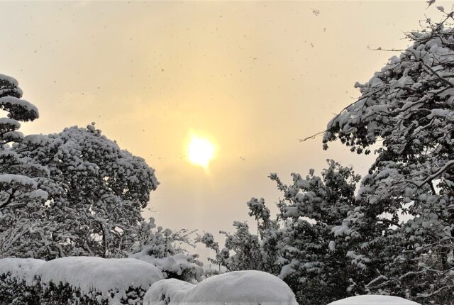 大雪の広島です。生徒は冬休みに入っているのでよかった… そんな中、登校して勉強している高3もいます。 ふと渡り廊下を見ると… どうか、祈りが通じますよ…