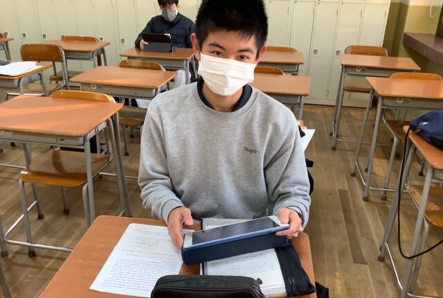 昨日の高1に続き、高2の模擬試験が行われています。 先輩たちの自己採点の姿を見て、『共通テストまであと1年…』決意を新たにします。 今日は理科・社会・…