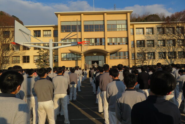 At this morning’s cold assembly, the 中3 students joined the high school boy…