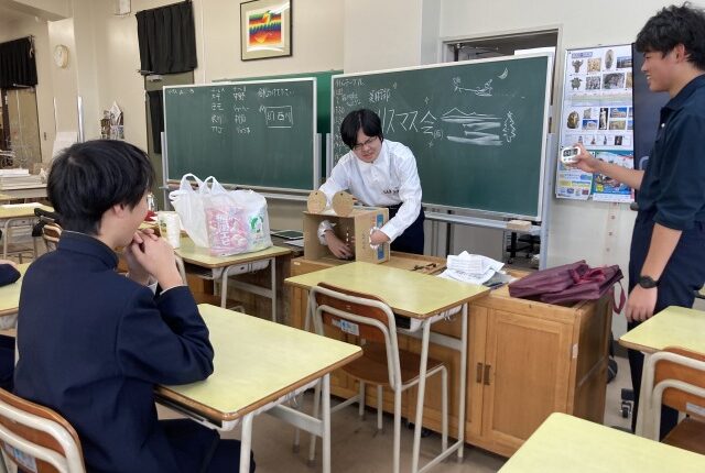 今年度は美術部員の提案により、美術室にてクリスマス会を実施しました。高1新部長の初仕事です。 まずは定番「箱の中身は何だろな」。チーム対抗戦で学年混合…