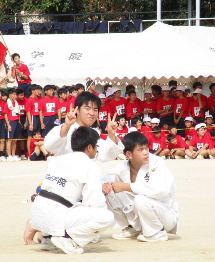 柔道部にとって、この体育祭の一番の目玉「部活対抗リレー」を前に気合十分です。