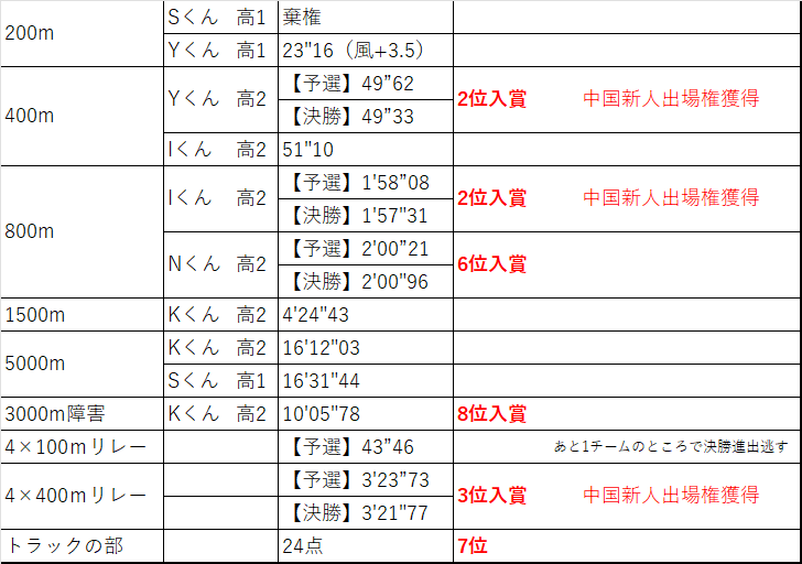 なお、県新人大会で各種目3位以内に入賞すると、中国高校新人大会への出場権を獲得できます。