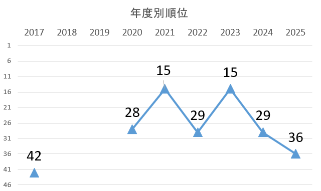 初出場時の42位に次ぐ、ワースト2位という結果に終わりました。