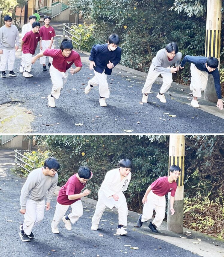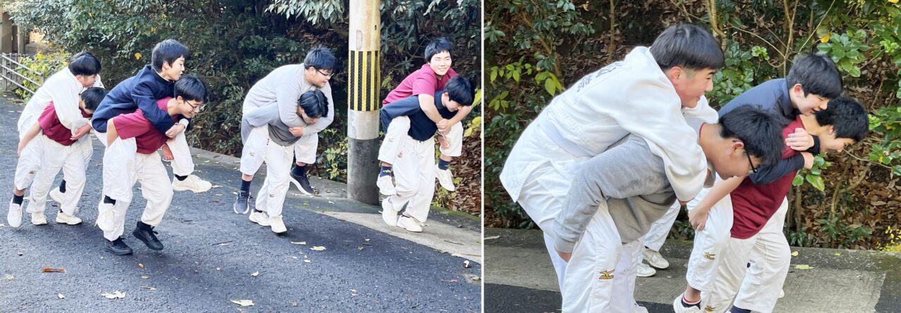 普段走ることのない柔道部は、各々走りやすい(?)格好で臨みます。