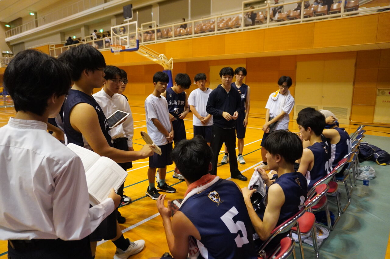 続く3回戦では広大付属高校と対戦しました。この試合は第1ピリオドの入りはとても良かったのですが、徐々に差を広げられ、最終的には29対59のスコアで負けました。特に広大付属高校との試合から学ぶことは多く、チームで反省点を修正して来月の県大会に臨んでいきます。