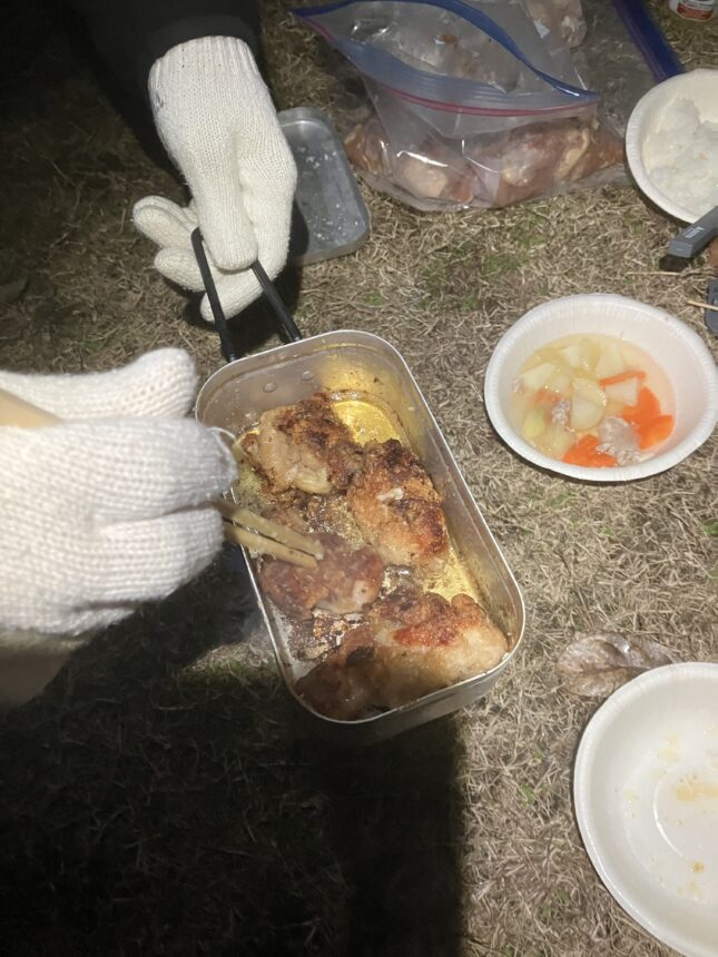 ゴールのみくまりキャンプ場で各々で考えた料理を作ってました。