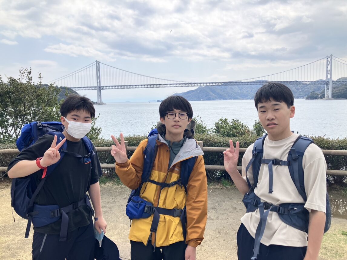 まず、高校生は多々羅キャンプ場〜伯方島〜大島〜来島海峡大橋を越え糸山展望台に向かいます。