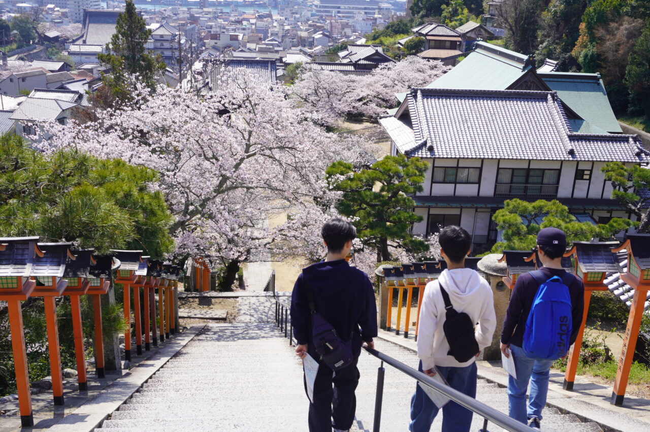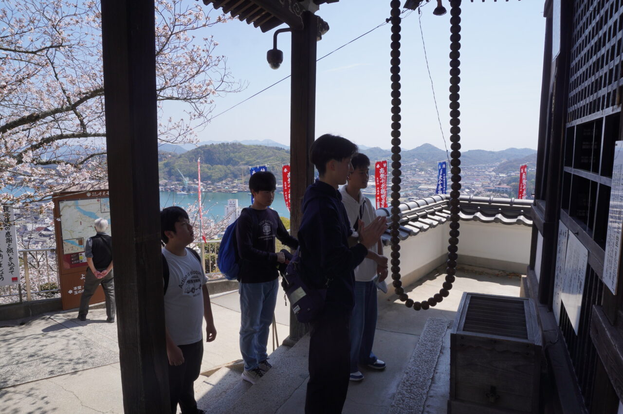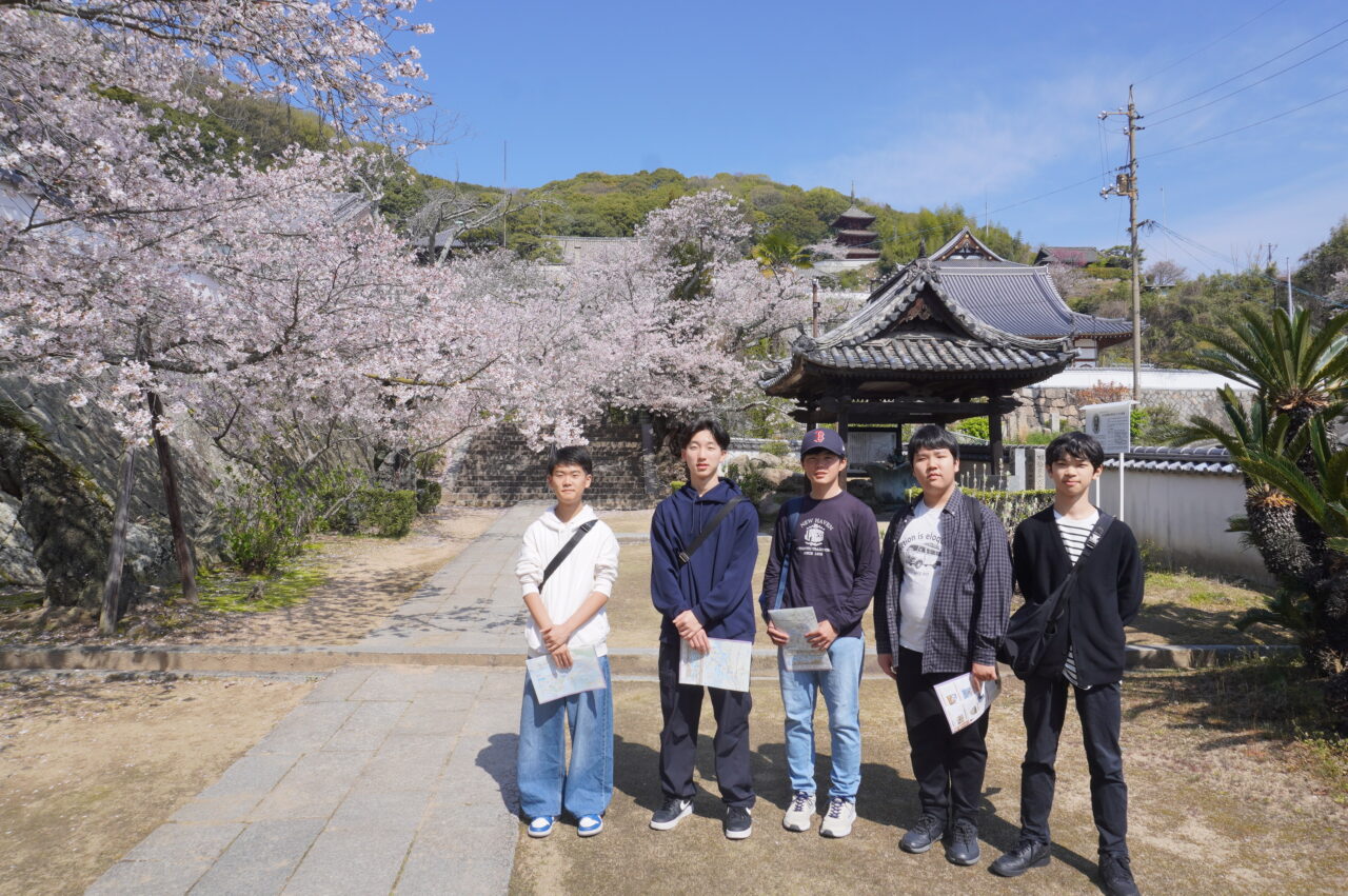 社研部では、この春休みに「尾道巡検」を計画し、4月3日(金)に行ってきました。ただ、春休みとは言え生徒達はクラブ等で何かと忙しいようで、計画はしたものの実際に参加したのは5名でした。尾道駅に9時40分に到着し、まずは西國寺を訪れました。