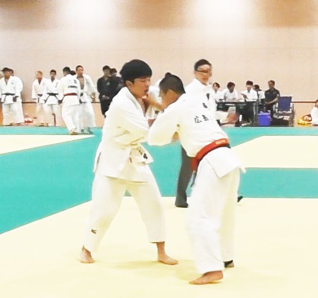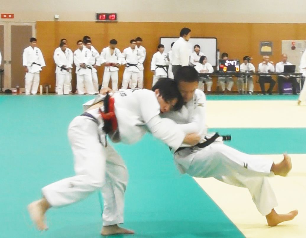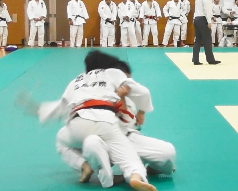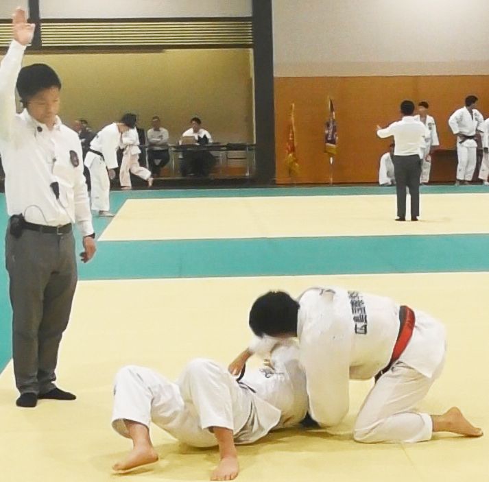 場外際で相手の技をかわし、有効ポイントを取りそのまま抑込で一本。