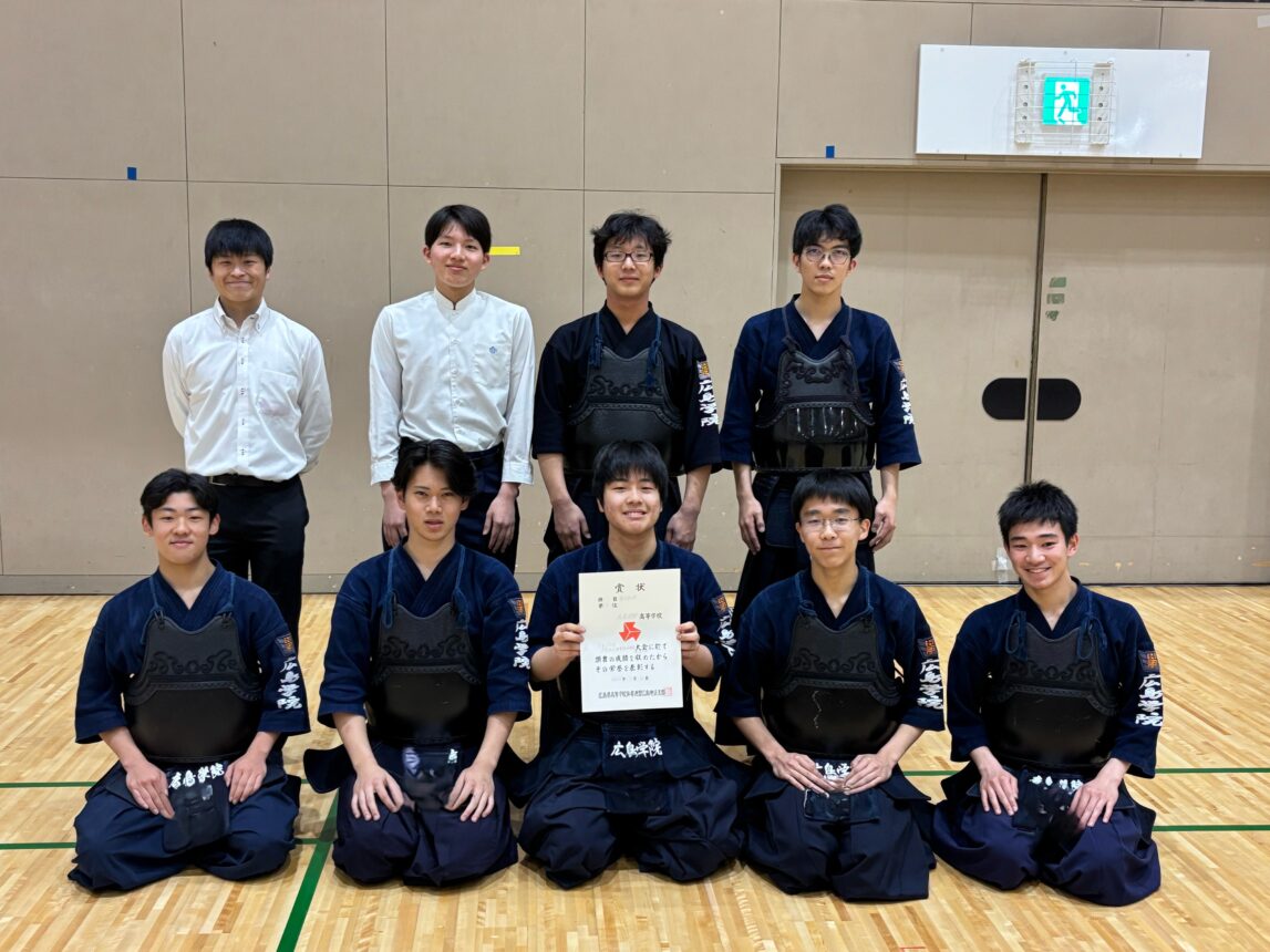 広島学院は初戦、シード校の祇園北高校と対戦しました。先週の県大会でも祇園北高校はベスト8に入賞しており、気の抜けない試合展開となりました。大将戦終了時点で勝者数・取得本数が同数となり、代表戦にもつれ込みましたが、本校大将の高3M君が相小手面で一本勝ちを収め、辛うじて勝利することができました。