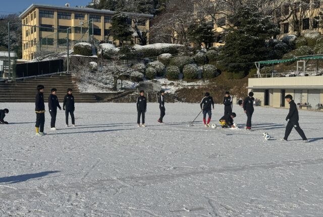 前日はマラソン大会、疲労が残る中での練習でした。 学院のグラウンドにも雪が積もっていました。2年前(https://www.hiroshimagaku…