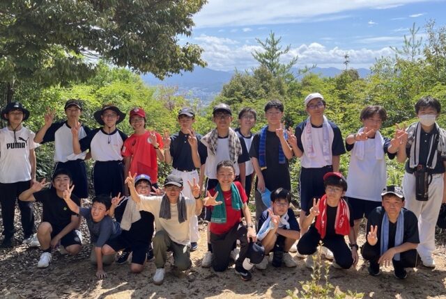 中学1年生(69期生)が20名入部しました! 広島学院裏山(見越山315m)で記念撮影です。 さて…、そのころふもとでは… 中1新入部員を歓迎するため…