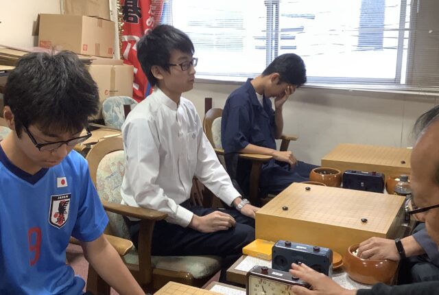 囲碁部です。 実は一般の大会なども参加しています。 10月22日、八丁堀にある囲碁サロン手談で開催された第48回広島囲碁団体王座決定戦に中三の3人が参…