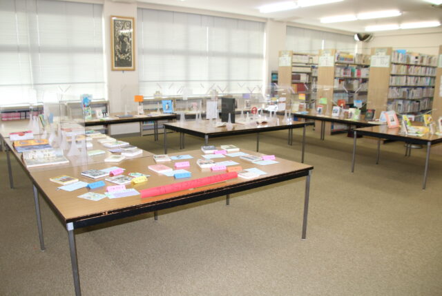 2022年度の図書委員会(図書館)の文化祭は図書館を公開する形で行いました。図書館の中央には、高1の図書委員が選んだ本の紹介と中1のPOPコンテスト…