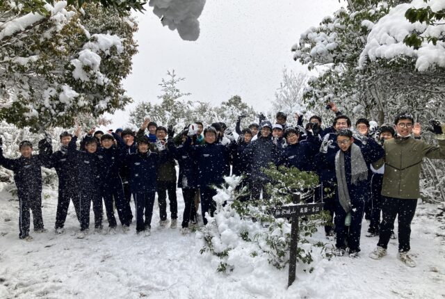中学1年生(67期)2年生(66期)とともに、 宮島一泊登山を行いました! 大雪が降ったあとの好天気。 あたたかな日射しに包まれます。 「包ヶ浦キャン…