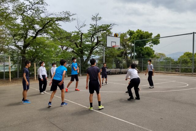 陸上競技部の部員は、たいてい土曜練習後には前庭でバスケットボールやバレーボールをして楽しんでいます。普段の練習では見られないような、楽しそうな表情です…
