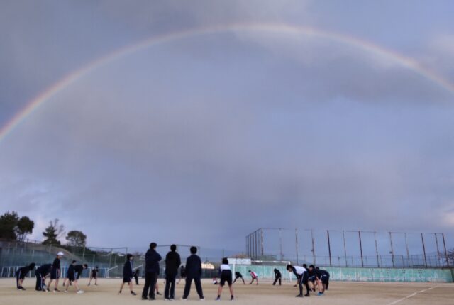 2/10(木)放課後部活動をしていると、大きな虹がかかっていました。それも大きな半円!生徒たちも大興奮でした! 2/11(金)今日は新入生登校日です。…
