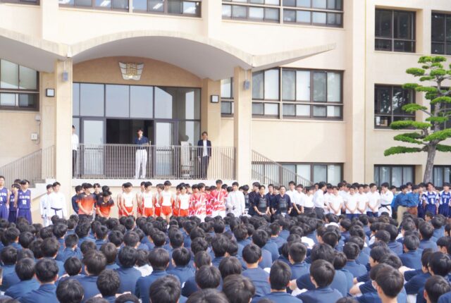 5月15日全校朝礼にて、県総体壮行式が行われ、 出場選手を代表して、我が柔道部主将高3のH.T君が、全校生徒へメッセージを贈りました。 彼の言葉です。