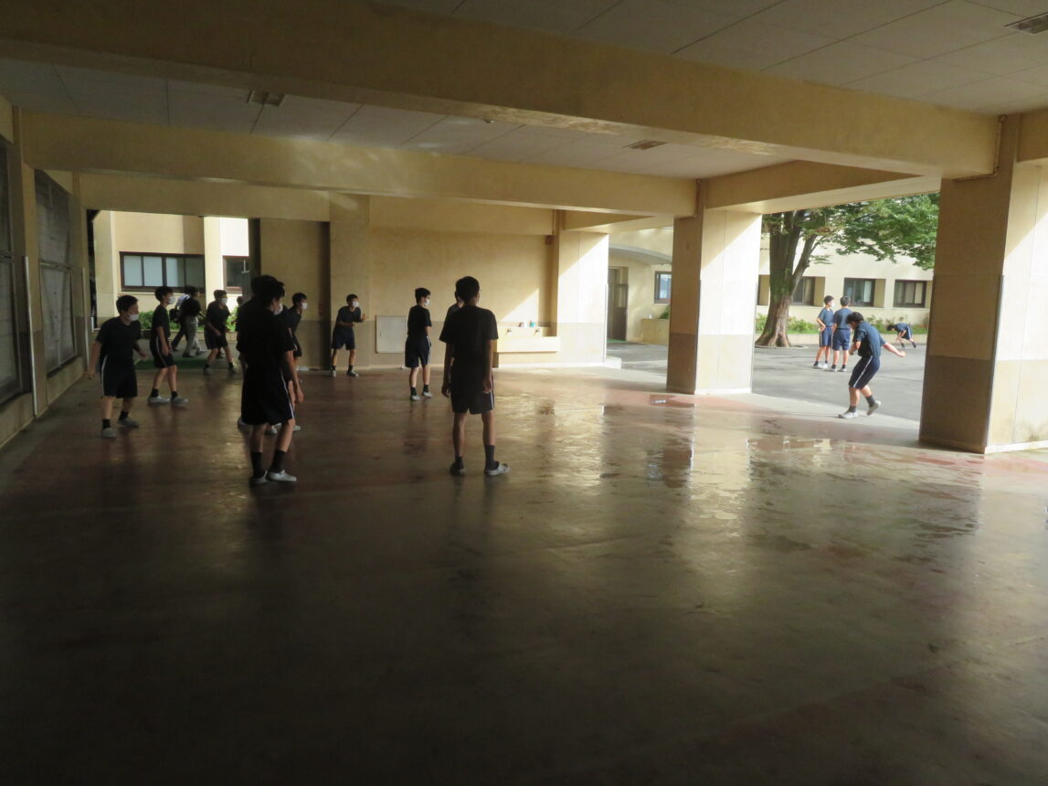 The boys guided each other around the school carefully. Although not easy, and quite scary for the masked student, the boys did their best to help each other.