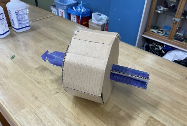 ある教員が今日一日かけて作っていたものだそうです。ちなみにまだ未完成だそうですが…… 何かがダンボールに突き刺さっているようです よく見ると突き刺さっ…