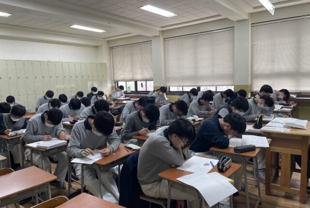 明日からは大学入学共通テストが2日間にわたって行われます。 世間の例に漏れず,本校の高3生も最後の追い込みにかかっているようですが…… なんと,学院生…