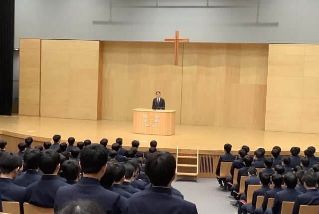 本日は全校朝礼がありました。 高3のU君が、学院生活で学んだことを話してくれました。 はじめに、「仕えるリーダー」について話してくれました。 文化祭や…