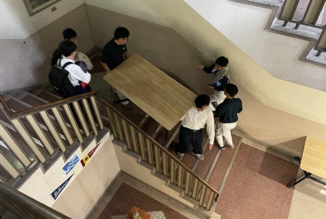 明後日を文化祭に控えた日,あいにくの雨模様でしたが,この日がやってまいりました 全体作業日です.教室の机・椅子を出し,いよいよ本格的な文化祭準備となり…