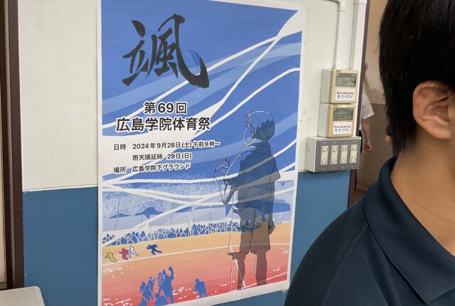 2学期も始まり,様々なイベントに向けた準備が始まっています. 体育祭ポスターは職員室の中にも貼られています こちらは体育祭を飾る各クラスの絵.いよいよ…