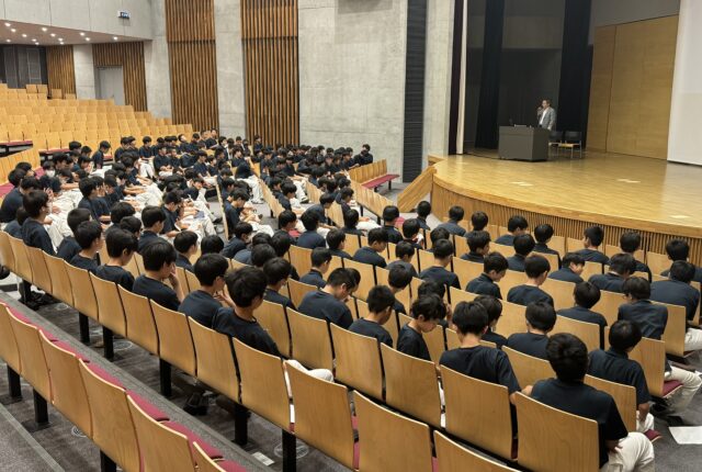 今日は中学1年生対象に講演が行われていました。『CM制作』に今から取り組んでいくようです。 生徒全員iPadを持ち、授業内外に活かしていますが、その適…