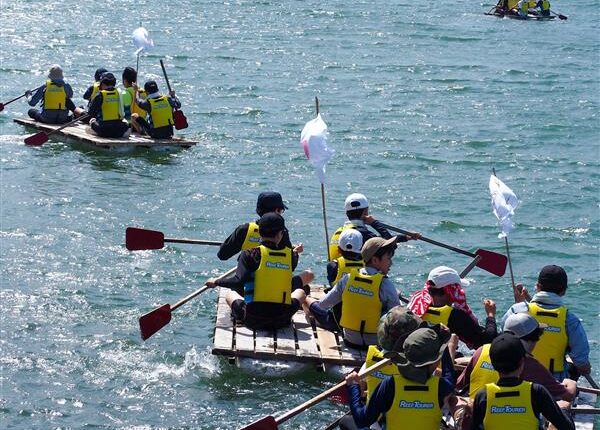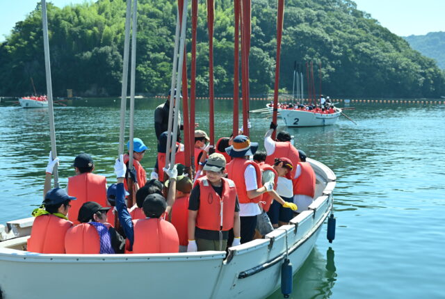 【2日目】 2日目は朝からクレセントビーチでカッター体験をしました。 櫂の扱いに悪戦苦闘の彼らでしたが,指導員さんの丁寧なご指導のお陰でスイスイ進む船…