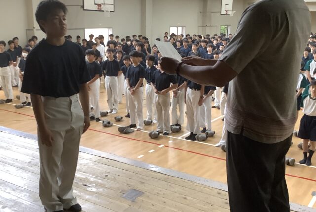 本日は中高別朝礼がありました。 中学の朝礼では、クラスマッチの表彰、サッカー部の表彰がありました。 まずは、クラスマッチからです。 優勝は中3Cでした…
