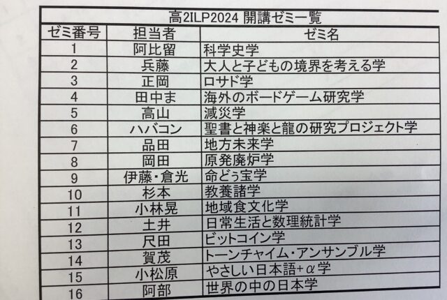 高2ILPは、自分の興味関心のあるテーマを選び、ゼミナール活動をします。 今年は次の16講座が開講されています。 このうち、「世界の中の日本学」では、…