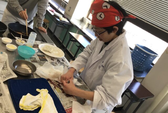 本日は雨模様のため、中高別朝礼は行われませんでした。 今日は今週火曜日に中2が行っていた家庭科の調理実習の様子をお伝えします。 イワシを捌いて調理する…