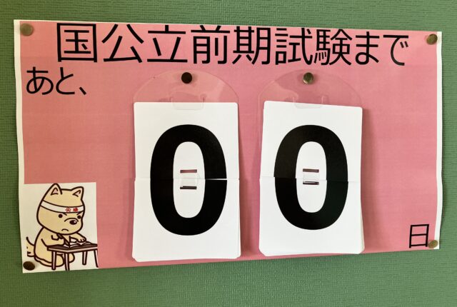 2月25日26日は、国公立大学の前期試験です。高3(63期生)の多くが、今日も入学試験に挑んでいます。 黒板には、最後までがんばりぬいた跡が… こんな…