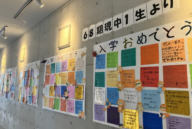 アルぺ講堂には、新入生を歓迎することばが… 現中学1年生(68期生)が心をこめて… さて、講堂の外では… 陸上部と野球部の生徒が、新入生を今か今かと待…