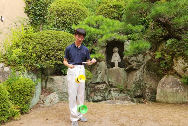 早朝7時半。毎日朝早くから、マリアさまの前でディアボロの練習に励んでいるTくん。ジャグリングを通じて奉仕活動を行う「ジャグレンジャー」のメンバーだそう…