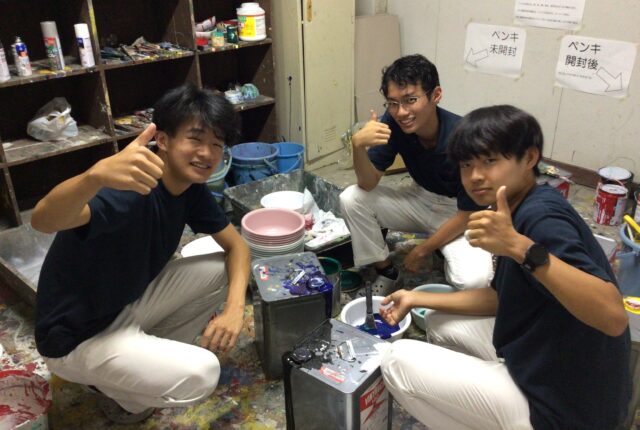 早いもので体育祭(10/3)まで気づけば1か月を切りました。 見慣れたいつもの光景の奥に,何やら作業をする高校2年生の姿が。 各クラス,体育祭に向けて…