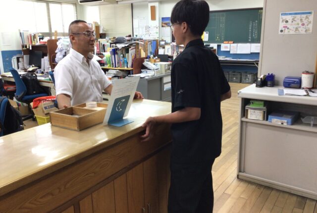 昨日の職員室の風景です。 授業中なのに職員室で先生と話し込む人が…。 61Kの卒業生が学校に顔を出してお世話になった先生に近況報告をしている姿でした。…