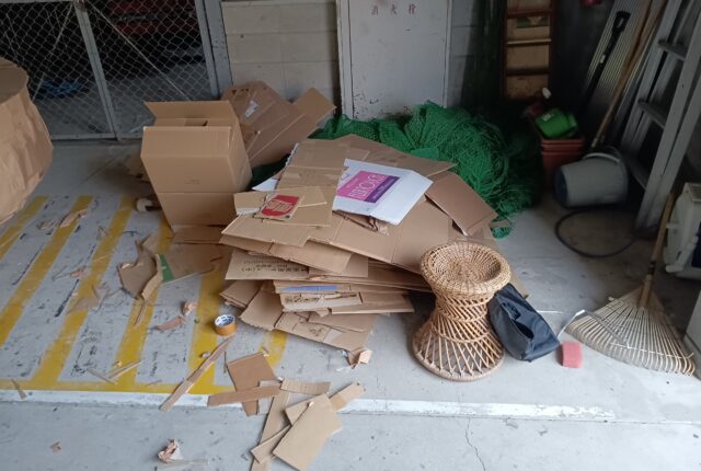 小体育館の下にはいろいろなものがあります。 最近、段ボールがたくさん運び込まれていますが、何らかの創作物の一部と思われる形状への加工が進んでいるよう…