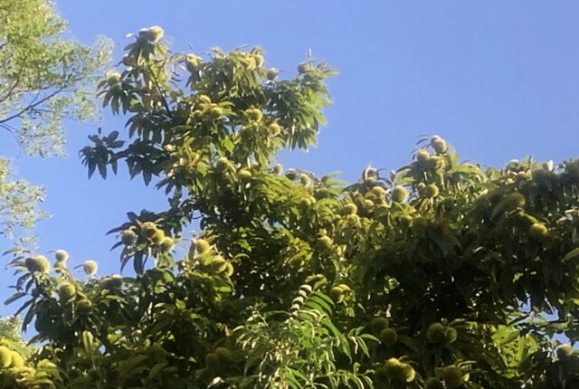 まだまだ日中は暑いのですが、ぼちぼち栗の季節… さあ、この木どこにあるかわかりますか? ・・・・・・・・・・・・・・ 物理実験室では中3の授業 私も半…