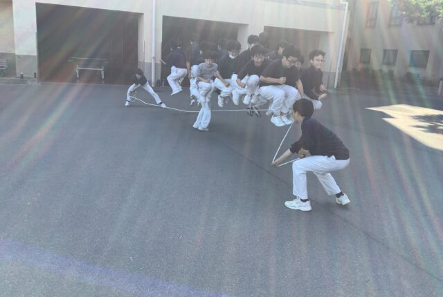 昨日の7時間目はLHR。普段は授業時間中は静かな前庭から元気な声が聞こえてきました。 中2が長縄跳びをしていました。どうやら、最後がコンテストらしく…