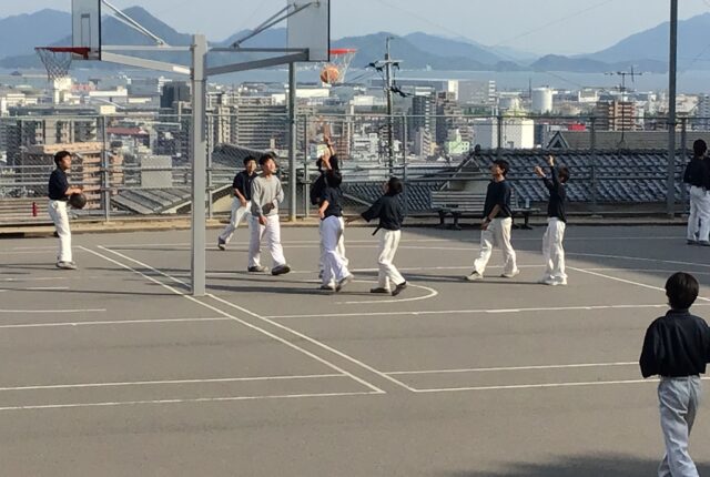 今日も夏日です。 放課後の様子をご紹介します。 まずは前庭から。 バスケットをして遊んでいます。 次は中体育館。卓球部が活動していました。 職員室では…