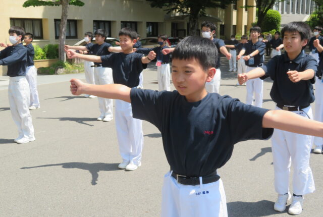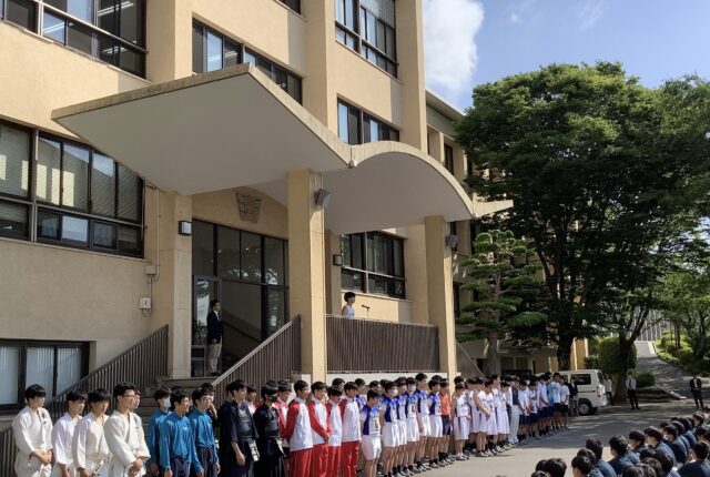 青空の下で、県総体壮行式が行われました! 陸上・水泳・登山・バスケット・ バレー・テニス・卓球・柔道・剣道、 今年は、9つのクラブが出場します。 バス…