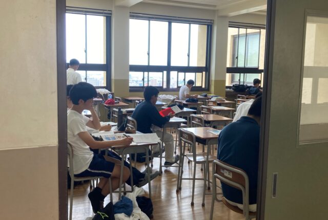 中1にとってははじめての広島学院での定期試験です。さぞかし勉強しているんだろうと思い、朝、教室に行くと…。 全然、してませんでした。初試験に向けて…
