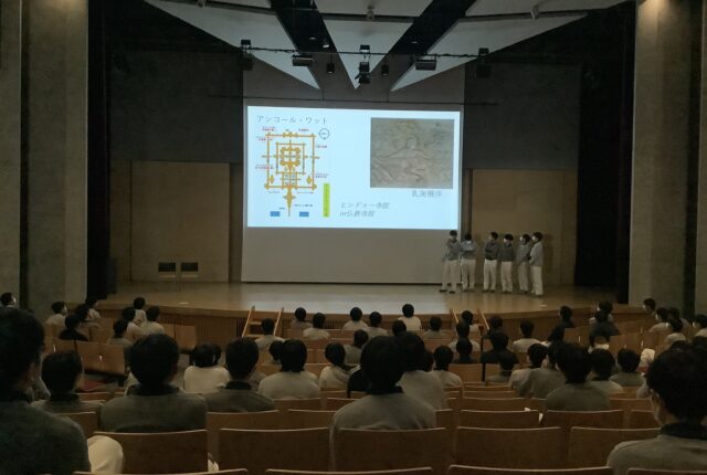 アルペ講堂では、高校2年生が冬休み中に行われた研修などの報告会をしていました。カンボジア研修と… 「文化人類学的知見に基づく狩猟体験in徳島」。 …
