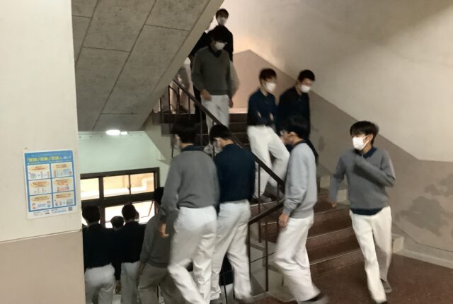 二時間目終了後に、突然の放送。「今から避難訓練を行います。大きな地震が起きています。速やかに机の下に入ってください。」 沈黙を保ちながら前庭に集合し、…