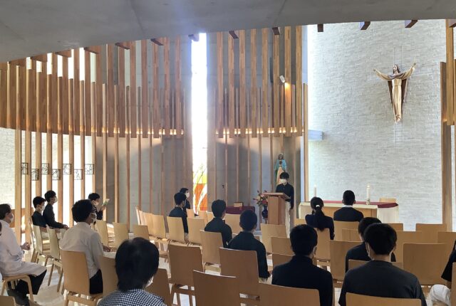 今日の祈りの集いはY先生の話でした。多くの中1が聖堂に足を運び、2階席にまで溢れました。Y先生の人望の厚さ故でしょうか。昨日今日と広島学院にはイエズス…