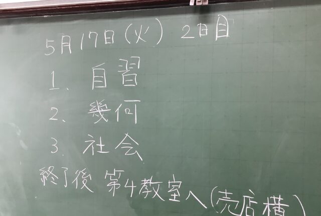 今日から1学期の中間試験です。朝の教室をのぞいてみました。 職員室から一番近い中2から。「漢字の範囲が去年の2倍くらいあって大変」「教科書ちゃんと持っ…