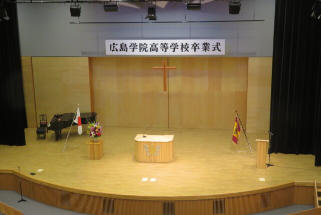 今年も上級生・ブラスバンドの出席は叶わず… 先輩のピアノとフルートによる静かな入場でした。 中間新校長の初仕事… 選ばれた聖書はここです。 式の最後に…