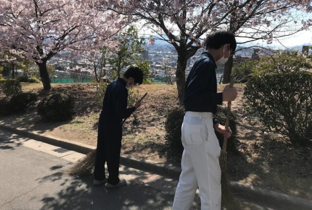 今日は6日の入学式に向けての新入生登校日。新入生が登校する前に…。 一年前の中1が、新中1が気持ちよく登校できるよう、校内をきれいにしています。 す…